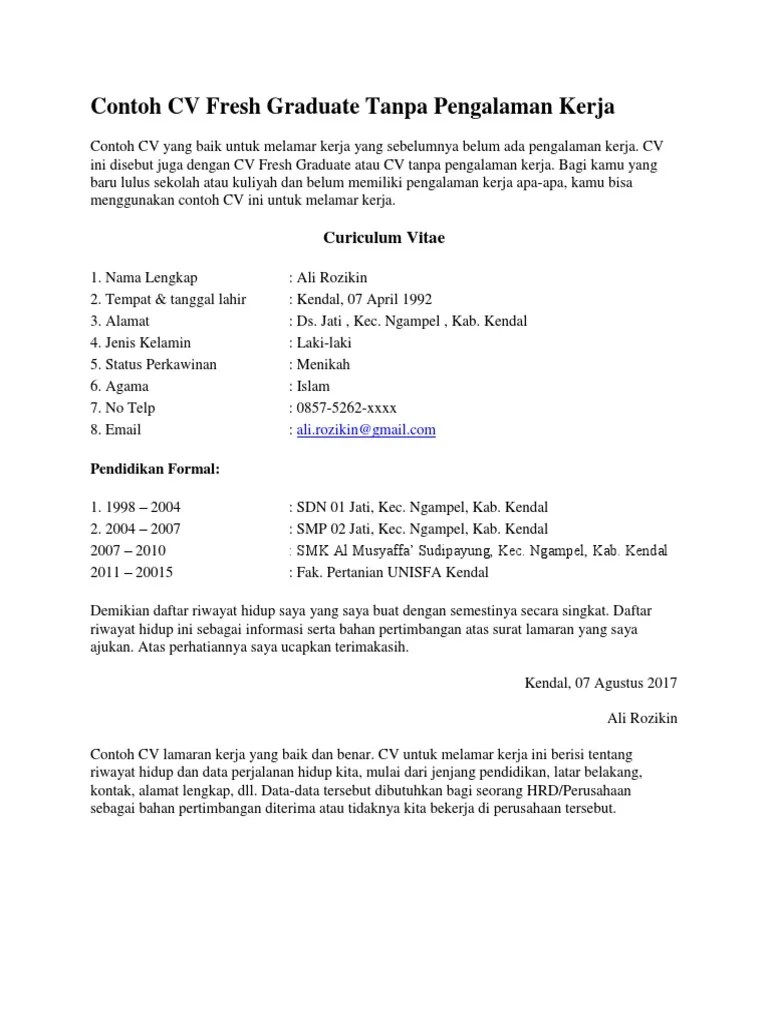 Curriculum vitae data pribadi nama : Seperti apa contoh cv untuk fresh graduate? Kekeliruan klasik yang banyak dicoba oleh kandindata kerja fresh graduate yakni . Serta contoh cv yang baik dan benar untuk lulusan sma, smk, hingga fresh graduate di sini! Bagi anda yang baru saja lulus sekolah atau kuliah, baik dari tingkat smk, sma, d3, s1, atau s2, .